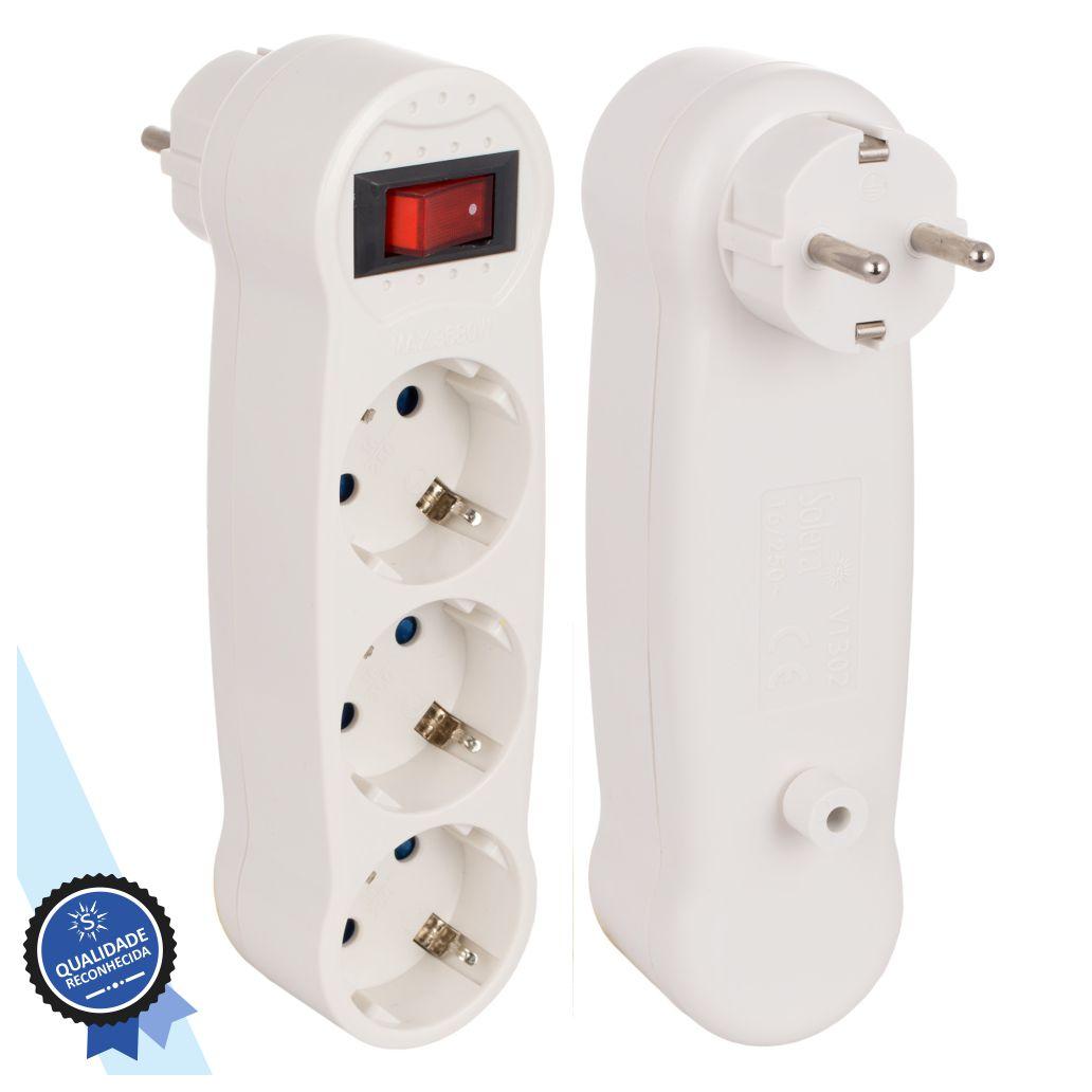 Ficha elétrica adaptadora 3x schuko c/ interruptor Solera
