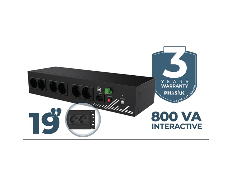 Estas UPS PHASAK estão dotadas da tecnologia digital interactiva com a tipo de onda de saída sinusoidal. O seu formato em 19″ torna-as aptas para uma fácil instalação em Rack’s. Com estas UPS de linha interactiva as tensões demasiado baixas ou demasiado altas são automaticamente corrigidas sem usar a bateria. Esta função garante a disponibilidade do máxima tempo de back-up em caso de uma interferência na tensão eléctrica oferecendo uma protecção fiável e de larga duração.