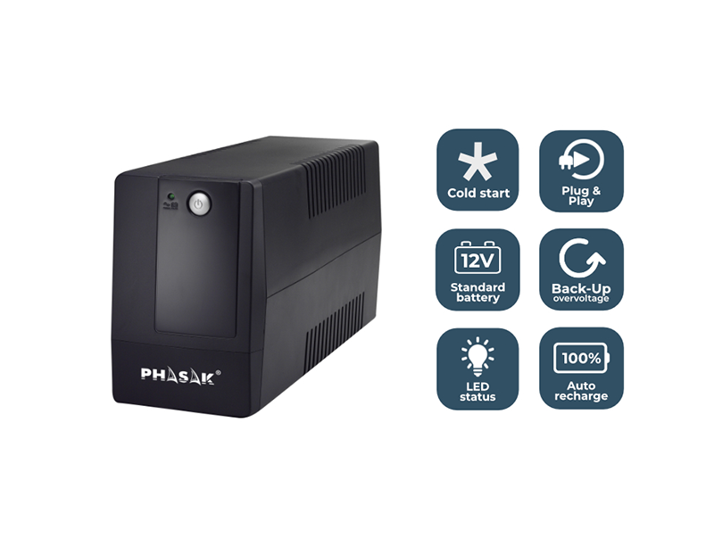 A serie Basic Digital Interactiva 600VA da Phasak, disponibiliza uma proteção eficiente numa caixa pequena e economica. Em comparação com as UPS tradicionais no mesmo tamanho, a Basic é mais compacta e ofereçe uma maior proteção contra variações e picos de corrente. Equipada com um estabilizador de voltagem, esta UPS forneçe uma energia estável e limpa aos equipamento conectados, enquanto o seu micro-processador embutido, garante uma alta eficiência.