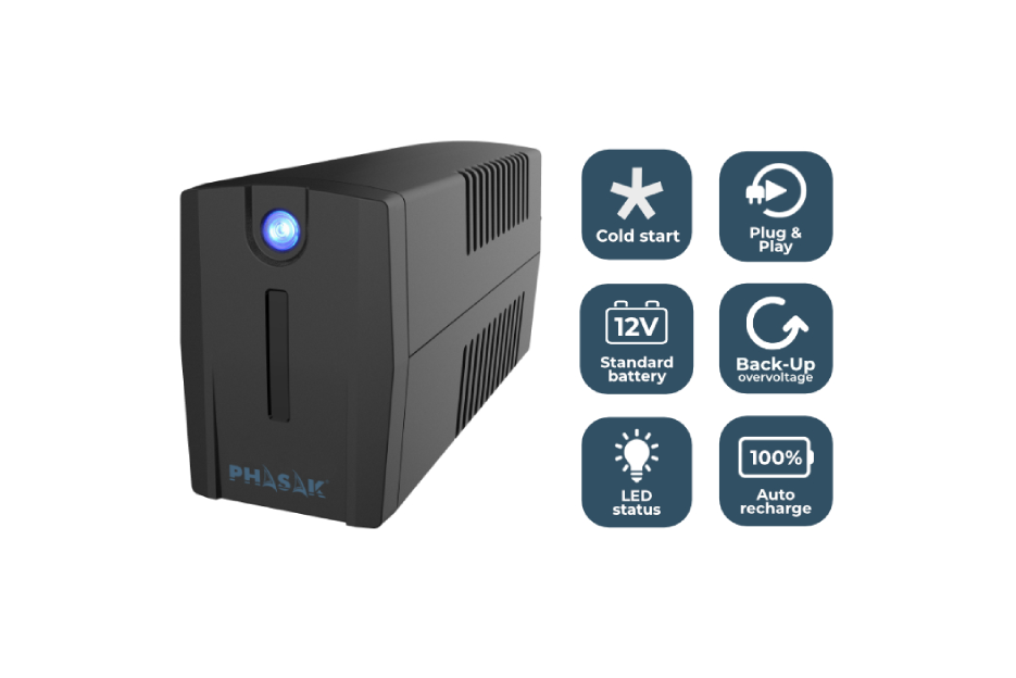 A serie OTTIMA Interactive 1060VA da Phasak, disponibiliza uma proteção eficiente numa caixa pequena e económica. Em comparação com as UPS tradicionais no mesmo tamanho, a OTTIMA é mais compacta e ofereçe uma maior proteção contra variações e picos de corrente. Equipada com um estabilizador de voltagem, esta UPS forneçe uma energia estável e limpa aos equipamento conectados, enquanto o seu micro-processador embutido, garante uma alta eficiência. Perfeita para casas e pequenos escritórios. Dispõe de 2 saídas de corrente, uma com bypass directo e protecção e outra com suporte de bateria e protecção.